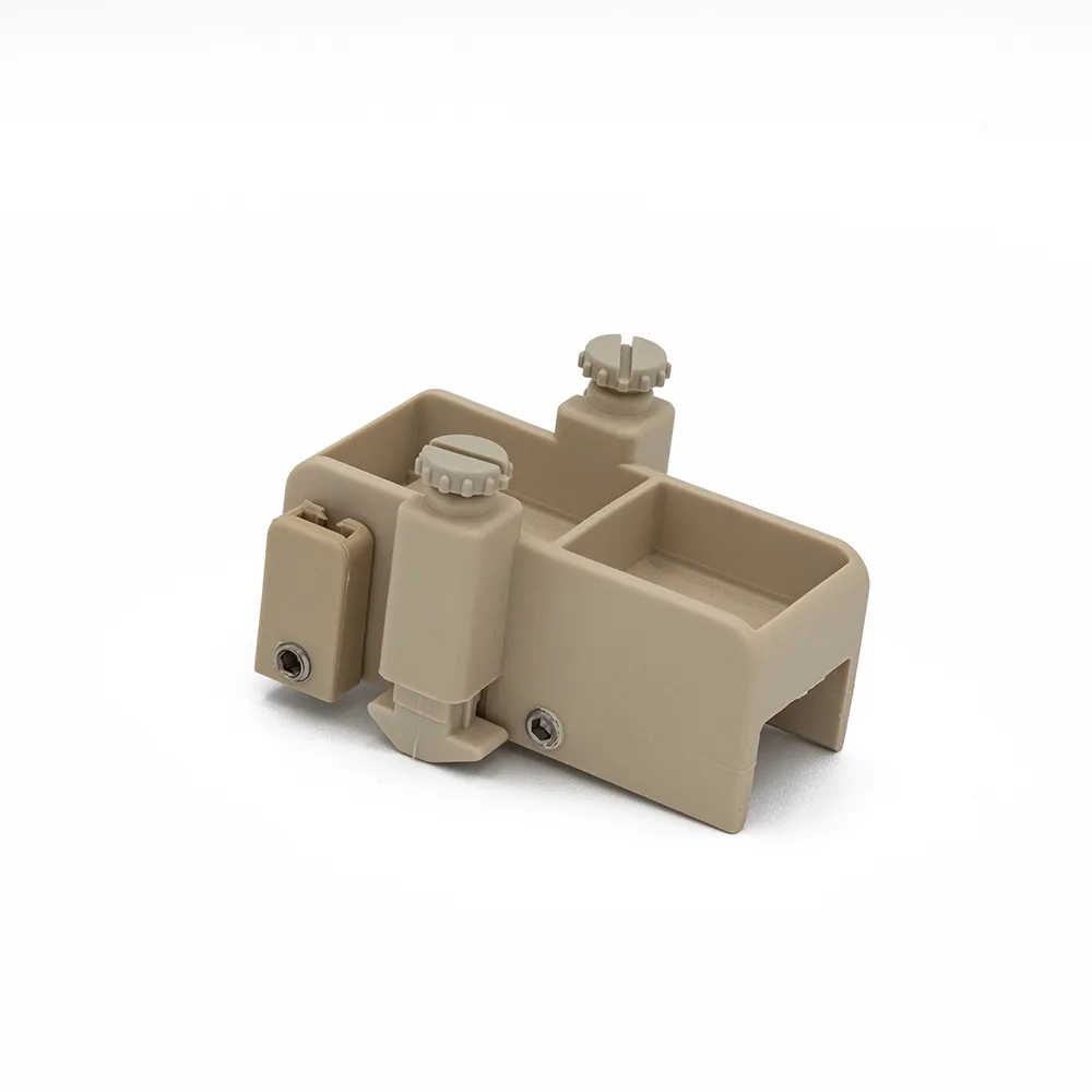 The windlock bracket fits over the top of the Vinyl Track. There are two for each track. One is placed at the fully extended position of each canopy section. The other holds the canopy in the retracted position at the home end of the track. The windlock supports spring clips that hold the canopy taut, but release it in heavy wind to prevent damage.